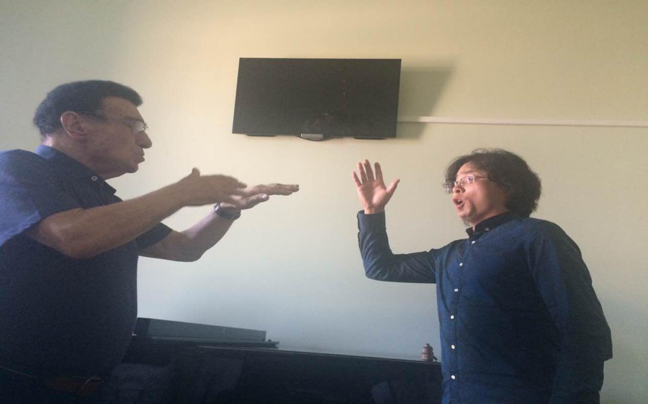 (图2:尹国峰老师与柴可夫斯基音乐学院声乐教授进行专业交流)