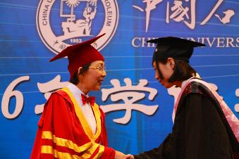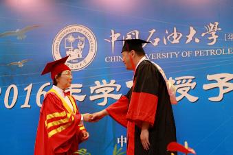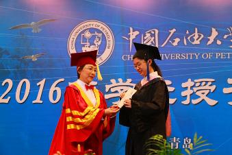 接着,文学院毕业生代表郭靖雯发言。她代表学生们回忆了四年丰富多彩的大学生活,并饱含深情地说道:“我深信,无论走到哪里,母校永远是我们共同的精神家园。不管是继续读研、出国深造,或是走上工作岗位,我们都会继续勤奋严谨、求实创新,秉承石大精神,做一名真正的石大人!”