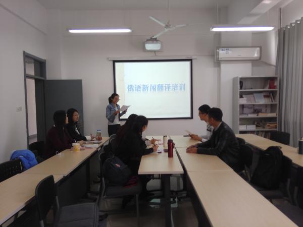 为培养学生的俄语新闻写作能力,提高其俄汉新闻互译水平,4月27日上午10点在文理楼306举办了第一期俄汉新闻翻译培训讲座。培训课由俄语系孙淼老师主讲,俄语笔译研一学生参与了培训。
