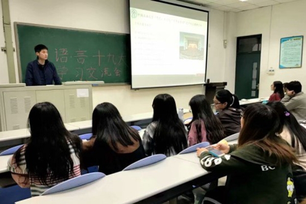 4月19日,我院汉语言文学1701团支部和1702团支部于南堂306室举办学习十九大主题班会。本次班会由我院团委委员、学生会主席郭嘉豪主讲,2017级汉语言文学专业全体学生参加。