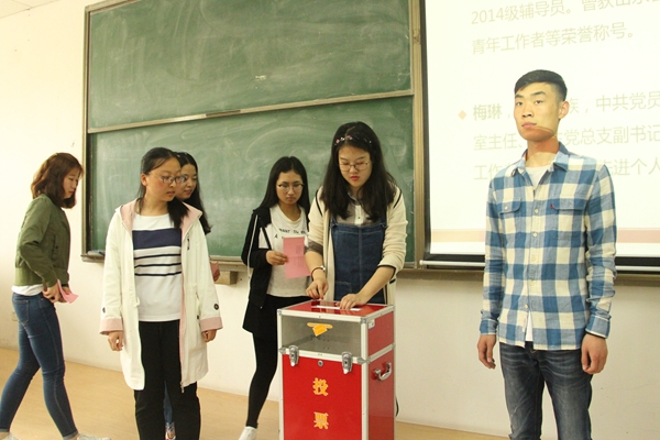 按照学院党委要求,根据《中国共产党章程》和《太阳成tyc122cc集团基层党组织换届选举工作办法》的规定,5月14日,太阳成tyc122cc集团文学院学生党总支换届选举大会在南教110举行。会议由文学院学生党总支副书记梅琳主持,文学院党委副书记、学生党总支书记邹维忠、团委书记赵振华、辅导员杜文倩、于露以及全体学生党员参加。