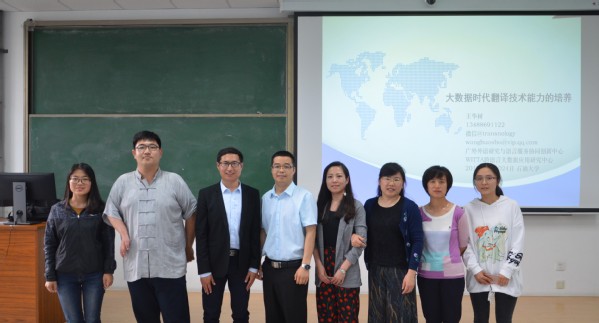 5月24日下午,文学院于南教205举办主题为《大数据时代翻译技术能力的培养》的讲座,本次讲座特邀广东外语外贸大学王华树教授担任主讲人,文学院副院长孙大满担任主持人。文学院研究生教学管理部主任淳柳、副主任徐小雁,以及刘艳芹、江润洁、任增强、姜训禄等老师和学院翻译专业的学生、翻译爱好者参加了本次讲座。