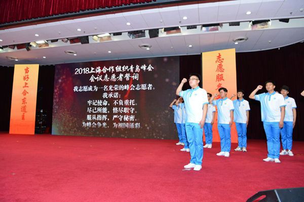 “我志愿成为一名光荣的峰会志愿者。我承诺:牢记使命,不负重托。尽己所能,恪尽职守。服从指挥,严守秘密。为峰会争光,为祖国添彩。”出征仪式上志愿者们字字句句铿锵有力,彰显着我校志愿者勇扛时代重担,“助力上合峰会,讲好中国故事”的决心。