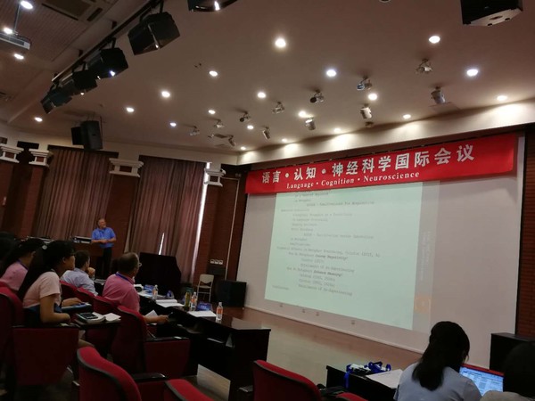 本次研讨会共有七个议题,包括语言加工与情绪加工之间的关系;隐喻加工、具身模拟与语义效应;二语习得的神经科学研究;字谜和幽默的认知加工;EEG的功能连接及其在语言学习中的作用;认知神经科学在双语教学中的作用;话语理解的认知科学解释等。会上,14位专家做了大会主旨发言,与会师生积极发表见解,与专家进行了深入地交流。主旨发言之后,部分专家与师生继续分组讨论,各位专家、学者和学生分别介绍在神经语言学、心理语言学、语言认知、具身语言、具身认知、认知哲学、隐喻、语音学、音系学、句法学、语用学、词汇学等方面的最新研究进展。我院邓燕和魏三军老师应邀出席会议并作了主题发言;邓燕老师7月4日上午作了 A Study on the Relevance of Cognitive Context in Utterance Understanding主题发言,魏三军老师7月4日下午作了 A Cognitive Analysis of Chinese and English Metaphors 主题报告。