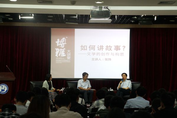 本次活动,张炜围绕着“如何讲故事”这一主题,就“文学创作中如何处理技巧与思想灵感间的关系”和“如何处理在学习西方文艺理论的同时兼顾本国文学特点进行创作”这两个创作的细小方面展开详细地介绍。张炜指出,掌握文学创作的技巧十分重要,创作者要在细小的方面严格要求自己,正确地使用词汇语句及标点符号等,切莫犯语句不通等基础错误。张炜还提倡当代的大学生要多读书、读好书,在他人成熟的文学作品中学习,才能把握语言的技术和艺术,才能有文学历练和对文字的调度,如此才能写出好的文学作品。“一部好的文学作品,除了作者自身的绝对过关的写作技巧外,还掺杂着个人的运气,这是生命中某一阶段的一个激灵,通过娴熟的文字技巧,非常巧妙地表达了出来。所以说,技巧是基础、很重要,但技巧之外的灵感思想更重要。”