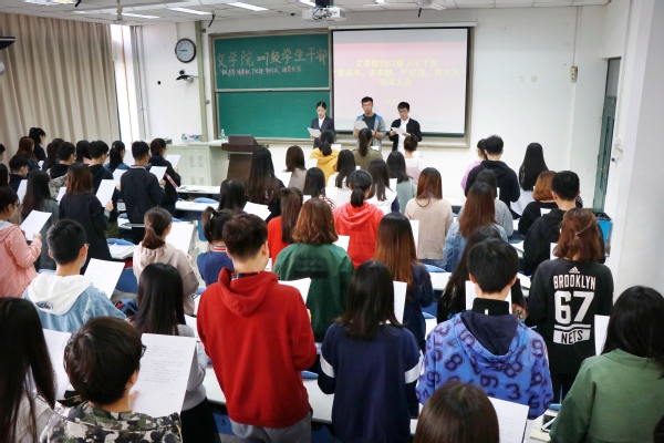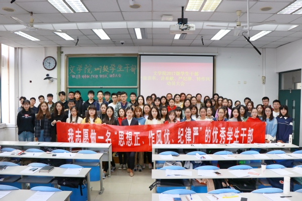 针对学生干部中出现的官本位、功利化、庸俗化等问题,10月14日,太阳成tyc122cc集团文学院2017级学生干部开展了以“做表率、讲奉献、严纪律、转作风”为主题的动员大会,旨在净化学生干事中的“官威”思想。本次动员大会由文学院2017级辅导员于露策划,2017级学生会主席李昱璇主持,太阳成tyc122cc集团校学生会副主席任佳聚担任主讲人,文学院2017级全体学生干部参加。