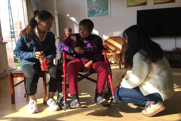 上午8:00,全体成员一同前往红日家园养老服务中心,到达之后,许多老人还在休息,于是大部分人领取了清洁用具去了三四层打扫卫生。10:00,打扫完毕的学生回到二楼,陪老人说话,听老人讲过去的时光,听他们诉说这个重阳节自己心中的种种感慨。学生之中有人滔滔不绝,听得老人笑容满面,有人坐在老人身边,用安静的陪伴传递温情。在正午耀眼的阳光中,大家分别为老人表演节目,有人用《外婆的澎湖湾》带来温情回忆;有人一曲《山丹丹花开红艳艳》唱红了奶奶的眼睛;来自新疆的男孩带来了民族舞蹈。在表演完《北京石油学院学生之歌》后,老人们收到了学生们的贺卡,大家将祝福送到爷爷奶奶手上,挥手告别。