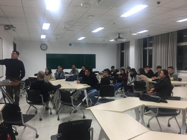 为了加强我校双一流建设,进一步推进研究生教育的国际化,10月25日晚,我校研究生英语教学改革之语言实践活动英语角在综合实验楼A406如期举行,英语爱好者积极参加并进行了热烈的讨论。外教Russ和Scott在现场做了激情演讲和美国文化介绍,文学院郭月琴教授也在现场积极调动研究生同学开口说英语,激发了同学们练习英语口语的热情,现场气氛热烈。有好几位同学羞涩地说这还是第一次和外国人面对面讲英语,很紧张,后来就好多了。同学纷纷表示喜欢这样的英语活动和浓浓的英语学习氛围,口语很重要,希望以后学校多搞些类似的活动,更希望免修的同学也到现场来,带动一下其他基础薄弱的同学。