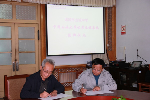 龙城中学工会主席祝学兵主持会议,中国石油大学文学院党委副书记邹维忠从学校历史、师资队伍、科研实力、学科优势、人才培养、招生政策等方面介绍中国石油大学;龙城中学副校长李明亮介绍龙城中学情况。邹维忠与李勇代表高校和中学签署优秀生源基地建设协议书,并进行基地挂牌仪式。双方表示,将以优秀生源基地挂牌为契机,通过讲座、实习、政策宣讲、夏令营、校长论坛等形式加强合作共建,促进双方共同发展。