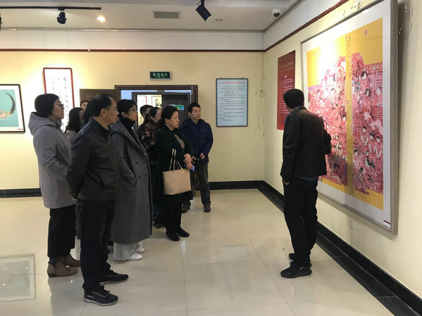 11月28日上午,文学院研究生外语教学部与美术系教师等应邀一同前往隐珠文化艺术中心,参观了政协青岛市黄岛区(西海岸新区)委员会“庆祝改革开放40周年美术书法摄影作品展”。中国民主建国会会员代表郭月琴老师和王志刚老师在参观活动中与大家进行了充分的交流与切磋。