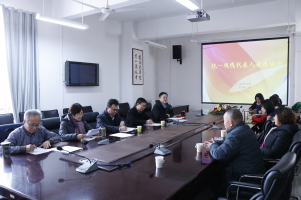 12月26日,文学院党委在文理楼358会议室召开统一战线座谈会。会议邀请民主党派、党外知识分子、留学归国人员参加,校党委统战部部长王德钊出席座谈会,会议由党委书记张永宁主持。