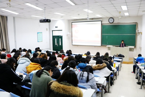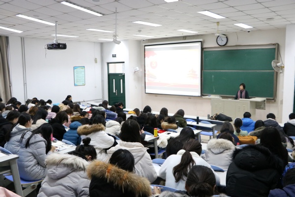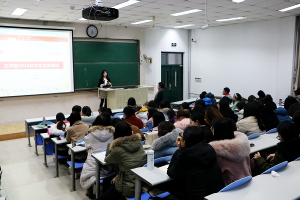 12月27日,文学院于东环103室举行2018年秋季学生党员培训。本次活动由文学院副院长、党委委员孙大满主讲,研究生第一党支部副书记唐洁主持,学生党总支副书记梅琳、部分辅导员和全体学生党员参加。