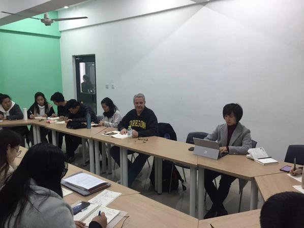 实践空间目前主要由外教Russ和Catherine值班授课,还有一位研外部的老师coteach,开设的课程主要有学术英语口语训练营、学术英语论文写作工作坊、英语沙龙等,分别于周五晚上7:00-9:30、周六早上9:00-11:30和周六晚上7:00-9:30进行,欢迎想提高自己英语水平有需求的同学前去享受语言服务。研外部的老师们经常和外教一起办公研讨,组织研究生同学开展各种语言实践活动,希望大家利用好现有条件,切实逐步提高外语水平。