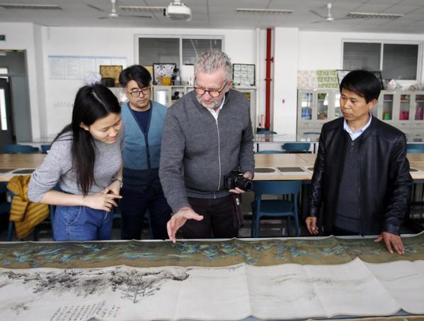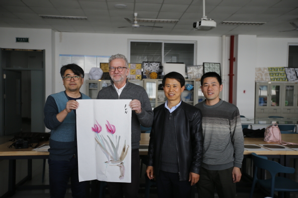 3月26日,山东青岛太阳成tyc122cc集团,丹麦工程院院士彼得•维•尼尔森(Peter V. Nielsen)在进行学术交流之余,来到该校美术系,和王成宝、孙峰等美术系教师进行中国传统美术艺术交流,领略历史悠久的中国艺术和博大精深的中国文化。