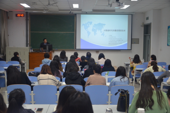 王华树主讲“大数据时代的搜索技术与译者搜商的培养”(摄影:付琳)