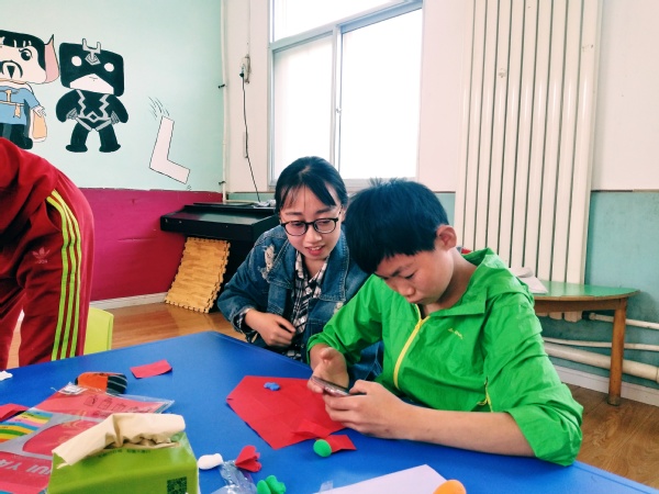 阳光助残,因为有爱。志愿者和孩子们一起折纸、捏太空泥。孩子们遇到不会的地方会显得有些急躁,但志愿者们仍耐心地手把手教孩子们应当怎么做。其中有个孩子还教志愿者们怎么叠玫瑰花。虽然有些交流上的障碍,但他教的很认真,也很耐心,确保志愿者们的每一步都是正确的。志愿者王聪说:“孩子教的玫瑰花真的很复杂,我学了一遍也没有学会,很多步骤还是他帮我叠的。他真的很聪明,手特别巧!”孩子们还向志愿者们展示了舞蹈:鬼步舞、太空步、变脸。孩子们跟志愿者在一起显得很快乐,志愿者们都向他们竖起了大拇指。青岛西海岸新区义务工作者联合会陈老师说,为了让孩子们接触更多中国优秀传统文化,与时候学校会请一些舞蹈老师来教他们跳舞,也会选有天赋的孩子去专业机构学京剧。孩子们之间相处融洽,赢了游戏还会喜滋滋地跟小伙伴们炫耀。有位年纪大一点的孩子主动承担起哥哥的角色,会帮弟弟们折纸,叫弟弟们一起跳舞。志愿者王妍说:“其实,孩子们和健康的孩子比起来没什么两样,他们都是天使。”