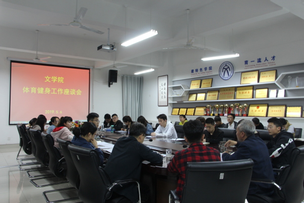 为进一步了解和统筹学院的体育健身工作,为运动会的开展做准备,5月6日,文学院于文理楼358室召开体育健身座谈会。本次座谈会由团委委员、2016级辅导员赵延升主持,党委副书记邹维忠,团委委员出席,文化和体育发展中心团干部,研究生会、学生会主席团、体育部成员及各运动队队长等参加。