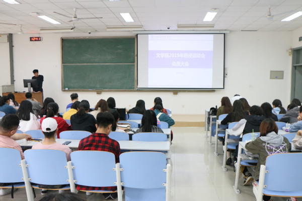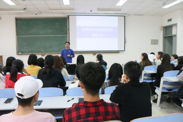为迎接学校2019年田径运动会,增强运动员的信心,鼓励参训运动员取得佳绩,5月13日,文学院于南教110室召开了赛前动员大会,学院团委书记赵振华和分管体育工作的团委委员赵延升出席会议,学院全体参训运动员、运动会志愿者参会。