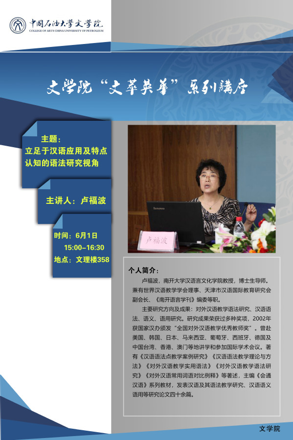 【学术讲座预告】立足于汉语应用及特点认知的语法研究视角