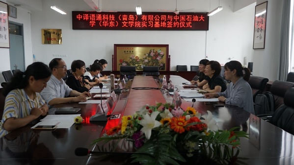 6月21日,文学院与中译语通科技(青岛)有限公司合作签约仪式在文理楼358举行,中译语通科技(青岛)语言产品中心总监吕倩、副总监李慧姿、经理焦宗艳,文学院副院长王新博、孙大满,研究生教学管理部主任淳柳,俄语系副主任林超和学生工作办公室主任梅琳出席本次签约仪式。会议由副院长孙大满主持。