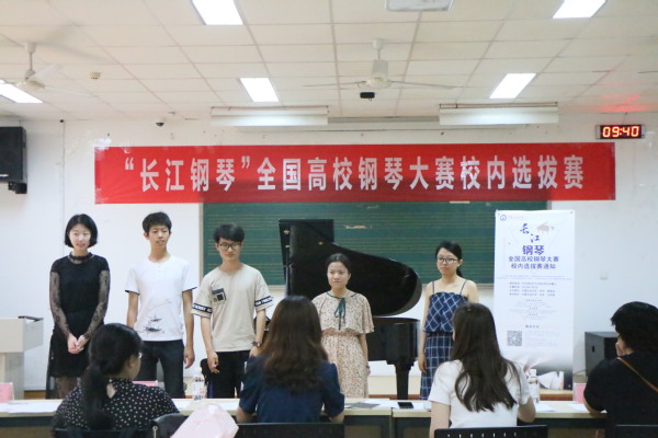 7月2日,“长江钢琴”全国高校钢琴大赛校内选拔赛于音乐系129教室举行。此次活动由我校教务处主办,文学院承办。音乐系副教授刘清,钢琴教师孙慧、石瑛、陈蓉、丁琳担任选拔赛评委,共16名选手参加此次比赛。
