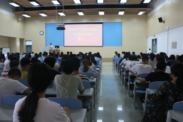7月5号,文学院2019年大学生暑期社会实践出征仪式于南教300如期举办。文学院团委书记赵振华、团委委员陈纪宁、学院兼职团干部及全体社会实践参与学生参加本次出征仪式。出征仪式由学院团委委员赵延升主持。
