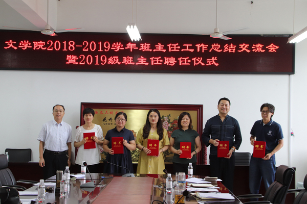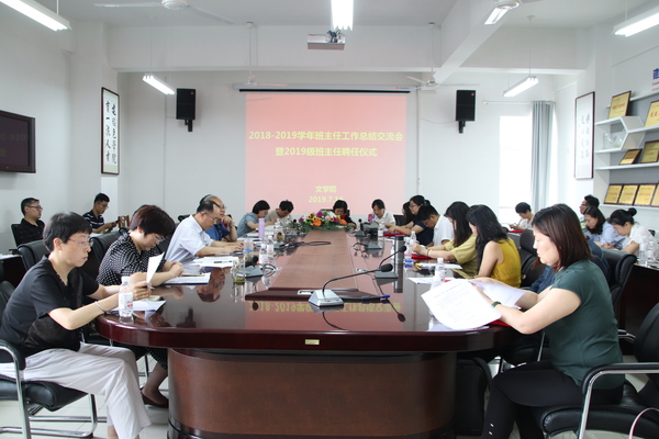 为总结学院班主任工作,加强班主任工作交流,促进班主任工作开展,文学院于7月16日在文理楼358召开学院班主任工作总结交流会暨2019级班主任聘任仪式。文学院副院长王新博、魏学宝、韩淑芹,文学院各系教师及拟聘班主任,全体辅导员和学生代表参加。交流会由学院党委副书记邹维忠主持。
