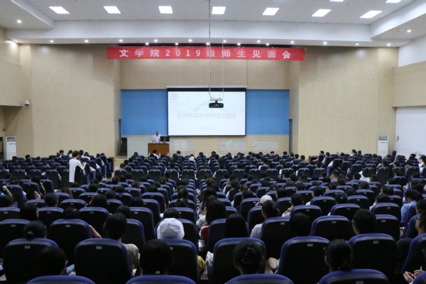 9月10日,文学院召开2019级师生见面会。院长王学栋,党委书记张永宁,副院长孙大满、魏学宝,各专业系主任、支部书记、各班班主任等老师出席会议,2019级全体本科生和研究生共同参加。会议由文学院党委副书记邹维忠主持。