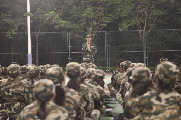 全国“自强之星”下军训连队,给新生讲故事,勉励新生要有强国心、报国志 杨安摄