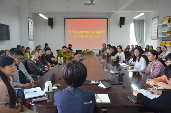 9月19日,文学院于文理楼358举行2019级翻译硕士新闻翻译小分队的启动仪式。新闻翻译指导教师付晓、孙路平,2018级翻译硕士新闻翻译小分队成员于洋和2019级英语专业硕士研究生参加。启动仪式由文学院研究生教学管理部主任淳柳、副主任徐小雁主持。