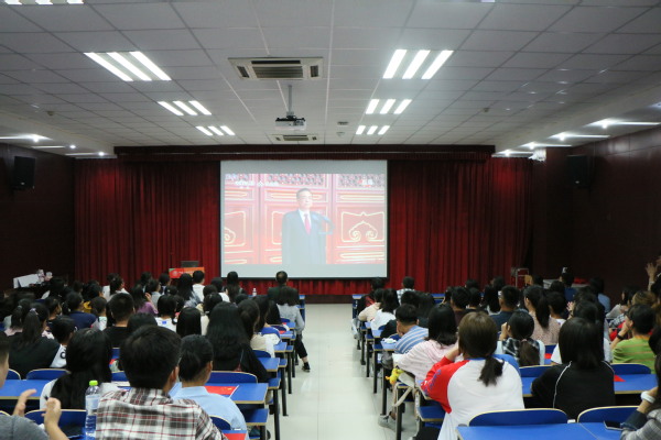 10月1日,庆祝中华人民共和国成立70周年大会在北京天安门广场隆重举行。中共中央总书记、国家主席、中央军委主席习近平发表重要讲话。学校武装部国防教育办公室主任李令功受邀与文学院师生以多种方式收听收看国庆庆祝大会、阅兵式和群众游行直播并合唱《我和我的祖国》。广大师生对新中国70年来取得的伟大成就感到自豪与骄傲,纷纷表示,在中国共产党的领导下,我们从站起来、富起来到强起来,中国取得了举世瞩目的伟大成就。全党全国各族人民要更加紧密地团结在以习近平同志为核心的党中央周围,高举中国特色社会主义伟大旗帜,不忘初心、牢记使命,为实现中华民族伟大复兴的中国梦团结奋斗!