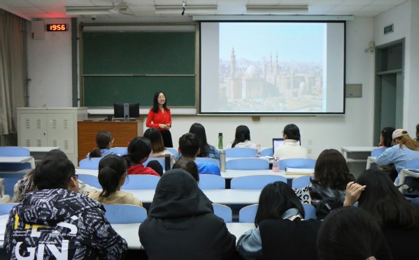 下篇“不能错过的阿拉伯色彩”中,毛潇琳通过丰富的图片和视频向学生们介绍了古老华美的千塔之城——开罗、雄伟壮丽的爱资哈尔清真寺、令人目不暇接的阿拉伯大袍舞以及充满民族特色的哈·利利市场和水烟,“埃及并不是像你们想象中的那样,只有象征着古老的黄色,它也拥有着丰富的色彩,这与阿拉伯文化的包罗万千密不可分。”讲座最后,她还介绍了阿拉伯礼仪、衣着要求等风俗习惯。汉语言文学1902班董方圆说道:“毛老师幽默风趣的讲解,不仅让我开阔了视野、了解到了埃及的美丽风光和独特的风土人情,还使我产生想亲自体验埃及生活的想法,我也深深感受到了阿拉伯国家与我国文化之间的巨大差异。我们应该尊重不同地区的文化。”
