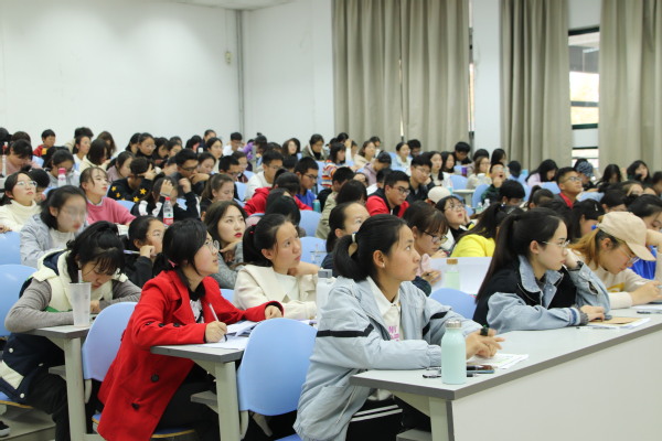 于露从开展社会实践与志愿服务的背景意义和文学院社会实践与志愿服务开展情况等方面展开讲述。她向学员们介绍了国家关于社会实践与志愿服务的大政方针及其对青年的重要意义,并引用习近平总书记的讲话对此加以阐述。她分析了现有的社会调研优势,但我院社会实践与志愿服务在红色教育、理论宣讲、文化传承等选题上较少的问题,为以后开展社会实践提供了经验教训。最后,她以“不忘初心、牢记使命”的主题对学员们提出早日成为德智体美劳全面发展的社会主义建设者和接班人的殷切希望。