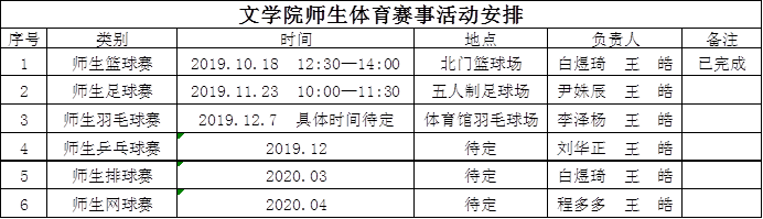 为进一步丰富学院教职工及学生校园文化生活,努力营造积极向上、健康文明的校园氛围,增强学院师生之间的交流,培养学院师生的集体荣誉感和勇于拼搏的奋斗精神,经研究决定组织举办文学院师生体育赛事活动。现就有关事项通知如下: