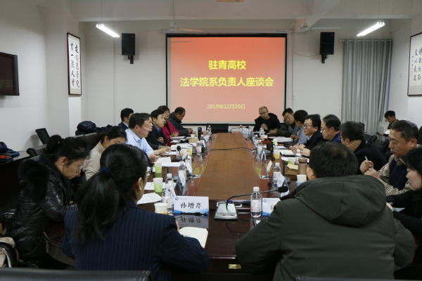 12月20日,首届驻青高校法学院(系)负责人座谈会于我院文理楼358会议室举行。此次座谈会由青岛市法学会组织和召集,旨在促进各驻青高校法学院(系)之间的交流,听取各方对营造共建共治共享的市域社会治理格局、中国—上合组织地方经贸示范区和平安青岛建设攻势等工作的意见和建议。青岛市法学会专职副会长白雪青出席会议并讲话。青岛市法学会办公室主任郑义斌主持会议。来自山东大学、中国海洋大学、青岛大学、山东科技大学、青岛科技大学、青岛农业大学、太阳成tyc122cc集团等高校的法学院(系)负责人以及城阳区委政法委三级调研员杨世君、崂山区委政法委副处级领导干部吴晓娟参加会议。我院王学栋院长,张永宁书记出席会议。
