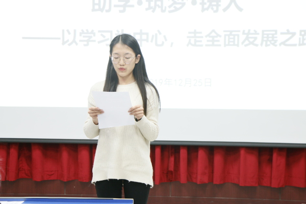 会议最后由受助学生代表宣读倡议书,倡议学生合理利用奖助学金,以助筑梦,以助铸人。本次会议在期末即将到来之际,通过交流分享的形式激励学生,有效地加强了学风建设,坚定了同学们勤学修德的信心和将感恩内化于心、外化于行的决心。