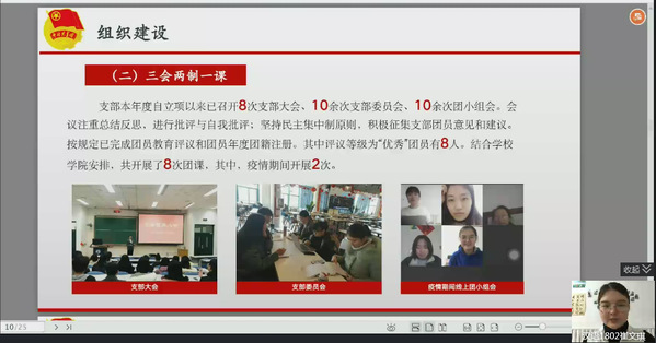 4月14日,学院团委顺利开展2019-2020年度学院“标兵团支部”暨学校“活力团支部”终期验收工作。此次采用线上材料审核与视频答辩等方式,团委负责人赵振华、于露、宋华和所有立项的团支部书记参加了此次验收。