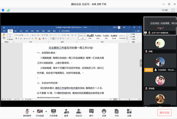 本次线上会议历时近一小时,会议思路清晰,目标明确,为文法易班五月份活动的开展展开蓝图,有利于工作室成员明确职责与任务,为易班工作室接下来的发展奠定良好基础。
