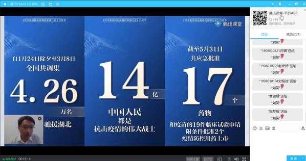 赵振华主要从展现中国力量、诠释青年力量两个方面作出讲解,他首先从中国力量角度,全面分析了中国的制度优势和治理优势,提升学生自信心和自豪感。随后赵振华用青年人在疫情当中勇于担当的事迹作为例证,对青年学生们提出几点建议:一是青年人要根据时代的需要,党和国家、民族事业的需要,中国梦的需要以及个人价值实现、成长发展的需要进行青年担当;二是要严格遵守国家法律法规,严格遵守、落实国家和地方的防控要求,做好本职工作,不造谣、不信谣、不传谣。而在青年人应如何树立担当大任的目标这一问题上,赵振华认为,青年学生要有担当时代重任的情怀、担当时代重任的本领和担当时代重任的勇气。他说:“青年要直面困难,勇往直前,用实际行动展示中国力量,中国优势;青年人责无旁贷,奋勇担当,展示青春力量,中国希望。”