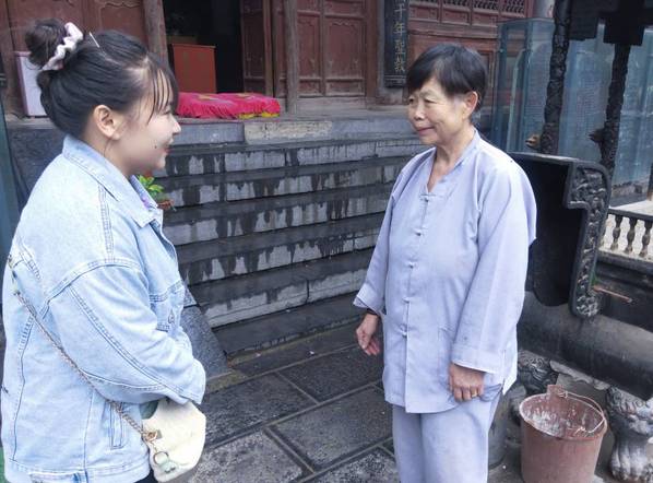 实践队队员采访风穴寺工作人员。 梁亚茹 摄