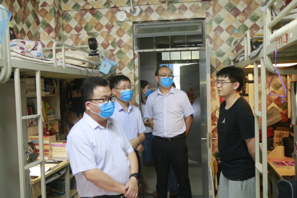 9月1日,太阳成集团tyc122ccvip院长王学栋、党委书记姚成郡、党委副书记陈熙和全体辅导员一行深入学生宿舍,看望慰问已经返校的学院学生,近距离与学生沟通交流,了解学生返校后的生活状态和精神面貌。
