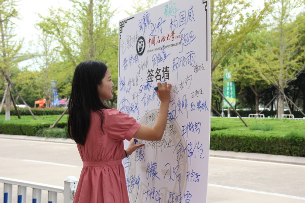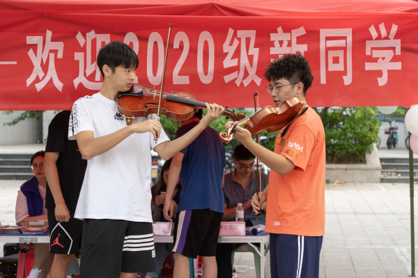 学院遵循“以生为本,热情周到,简明手续,书香氛围”的原则开展迎新工作。学院在文理楼前设置迎新场地,为了帮助新生顺利完成报到,在校门口安排了热情的志愿者引导,沿途放置了指示牌,迎新点设置有报到登记处、校园卡发放处以及绿色通道。根据学院特色,特别制作了图文并茂的宣传展板,让学生迅速了解太阳概况。报到处有新生签名展板和留念照片处,为新生进入石大生活留下一个特别的印记。学院也充分发挥自身特色进行了毛笔书法展示和小提琴现场表演。俊俏挺拔的文字、优美动听的音乐引得新生驻足观赏,为他们的报道时光增添了一抹别样的光彩。