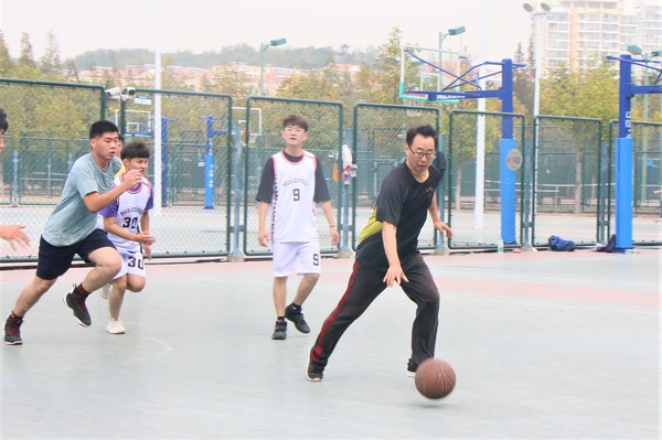 太阳成集团tyc122ccvip教师李汉与学生一同参与篮球赛 李洁摄