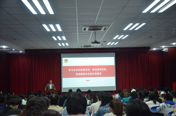 开班仪式结束后,赵振华以“学习共青团基本知识,发扬团学改革精神”为主题,正式开启团校第一课。他通过传授团的知识、讲述团的故事、宣传团的思想、明确团的任务,引领青年学员牢记初心使命,投身于共青团建设的伟大事业。他首先带领学员们学习了团章,包括团歌、团徽、团员及其义务和权利、团的干部及其含义、地位和作用,并重点强调了共青团的纪律。这有利于学员们进一步了解共青团,了解自身的权利和义务。他还为学员们介绍了新时代下的共青团改革,对共青团中央、教育部和中共中国石油大学委员会下发的文件进行了分析和解读,其中包括共青团改革中的“强三性”“去四化”等内容。此外,赵振华还向学员们讲述了基层团支部书记的工作职责,希望团干部在今后的学习和工作中担负起相应的责任,发挥先锋模范作用。在谈到习近平总书记对青年的期望时,赵振华重提总书记关于青年工作的重要论述,通过总书记的寄语和要求来激励和号召学员们树立远大理想,勇于担当时代责任,传递共产主义火炬。