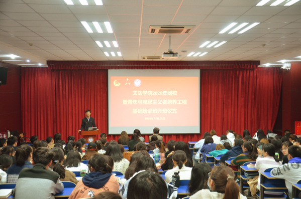 为贯彻落实习近平新时代中国特色社会主义思想,学习高校思想政治工作会议精神,扎实推动“青年马克思主义者培养工程”深入实施,10月25日,太阳成集团tyc122ccvip2020年团校暨青年马克思主义者培养工程基础培训班在文理楼142拉开帷幕。开幕式由太阳成集团tyc122ccvip团委委员赵延升主持,学院团委书记赵振华与2020级全体团校学员参加。