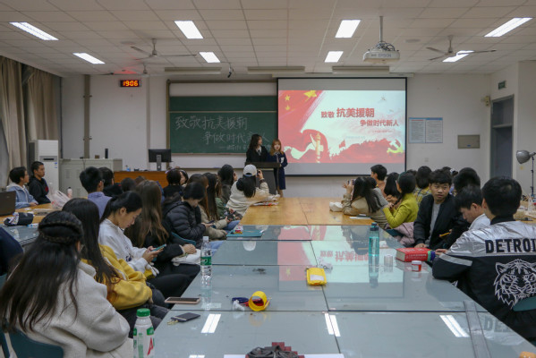 本次团日活动围绕“致敬抗美援朝,争做时代新人”主题展开,共分为“铭记历史,致敬抗美援朝”和“把握当下,争做时代新人”两个环节。