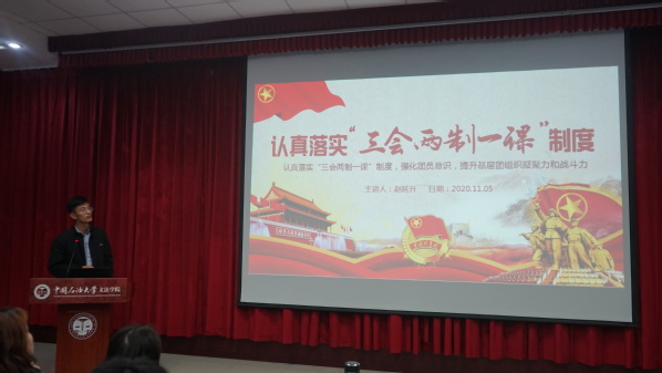 为强化团员意识、提升基层团组织凝聚力和战斗力,太阳成集团tyc122ccvip于11月5日晚在文理楼142开展2020年团校第四讲——认真落实“三会两制一课”制度。本次课程由太阳成集团tyc122ccvip团委委员赵延升主讲,太阳成集团tyc122ccvip2020级全体团校学员参加。