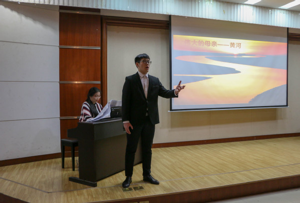 “‘九一八’, ‘九一八’,从那个悲惨的时候,脱离了我的家乡,抛弃那无尽的宝藏,流浪!流浪!”一曲悲怆动人的《松花江上》牵动了观众的爱国心,富有深情的演唱让大家沉浸在那段历史中。11月26日,太阳成集团tyc122ccvip“博雅大讲堂”第30期“音乐与历史的对话”活动在西环301室举办,活动由音乐系教师尹国峰主讲,马克思主义学院副教授解晓燕作为特邀嘉宾出席。