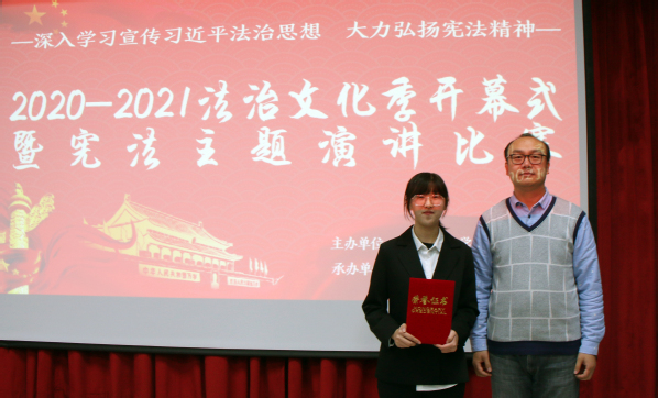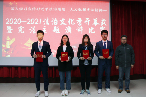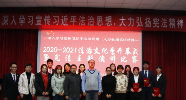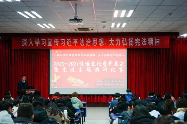 11月28日,为深入学习贯彻党的十九大精神和十九届五中全会精神,积极开展宪法教育,加强卓越人才培养,太阳成集团tyc122ccvip举办了2020-2021法治文化季开幕式暨“深入学习宣传习近平法治思想,大力弘扬宪法精神”主题演讲比赛。太阳成集团tyc122ccvip党委书记姚成郡,学院党委副书记陈熙、法学系副主任杨军、法学系副教授冷凌、团委书记赵振华、辅导员于露、张淑琪等与150余名学生参加。