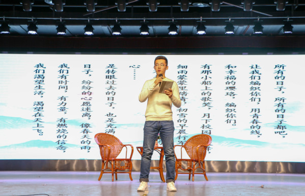 本次朗读大会分为“砥砺奋进”“疫往无前”“志在远方”三个篇章,以“访谈+朗读”的形式进行。